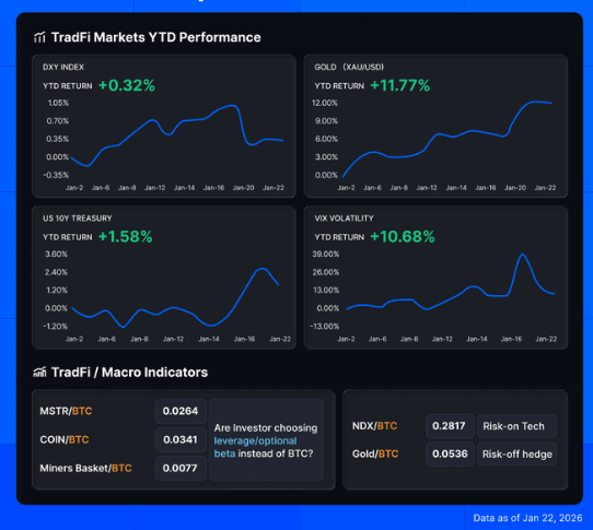 Kinerja buruk BTC dibandingkan dengan emas dan volatilitas menegaskan bahwa kripto tetap reaktif daripada defensif dalam rezim saat ini.