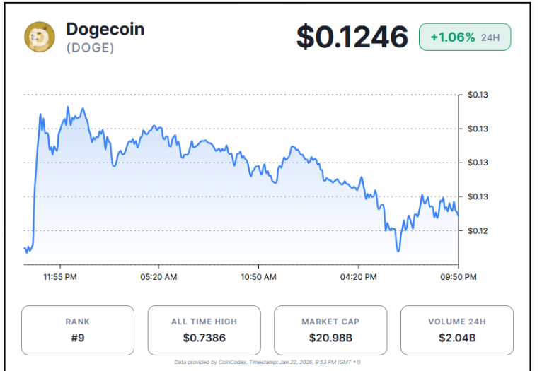 Dogecoin terus menurun selama beberapa minggu terakhir. Dari 14 hingga 20 Januari, Dogecoin mengalami penurunan selama tujuh hari berturut-turut, dengan sedikit pemulihan pada 21 Januari. Tren penurunan ini mirip dengan penurunan yang berlanjut dari 6 hingga 12 Januari.