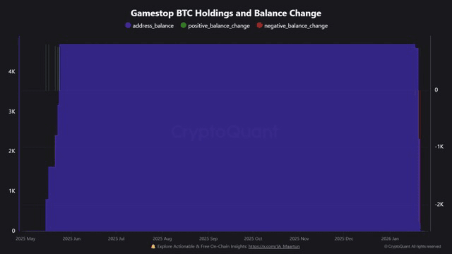 GameStop memicu diskusi baru di pasar cryptocurrency dan saham setelah mentransfer seluruh saldo dari $BTC ke Coinbase Prime. Perusahaan memindahkan semua unitnya sebanyak 4,710 BTC, langkah yang segera menarik perhatian trader dan analis. Coinbase Prime biasanya mendukung transaksi institusi besar, yang membuat waktu transfer sulit diabaikan. Investor kini bertanya-tanya apakah langkah ini menunjukkan likuidasi yang akan segera terjadi atau repositioning strategis.