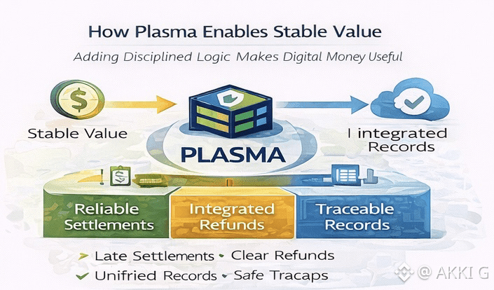 Plasma is built to provide that missing layer. Plasma does not replace stablecoins. It gives them context. By embedding discipline into execution, Plasma ensures that stable value behaves like dependable money inside real businesses. Payments finalize within defined windows. Refunds are integrated rather than improvised. Lifecycle records remain linked from initiation to resolution.
