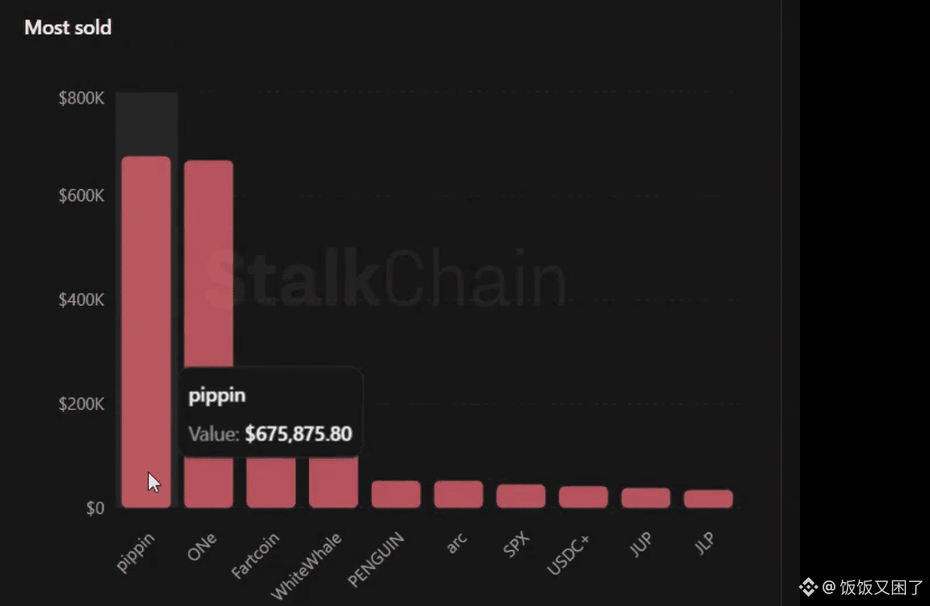根据 StalkChain 的统计,PIPPIN 成为过去 24 小时内被抛售最多的代币之一。