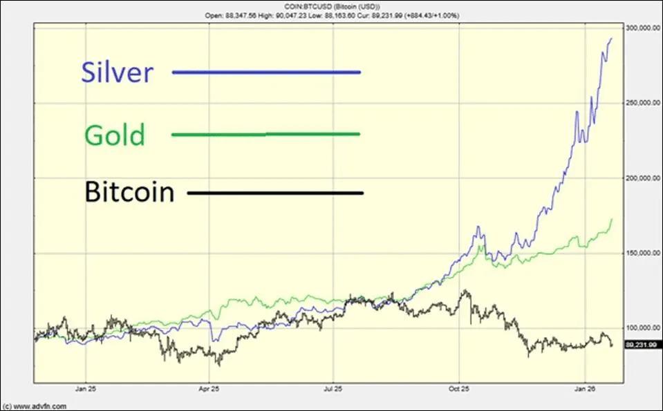 Dari perspektif kap pasar saja, Bitcoin menawarkan peluang pertumbuhan yang lebih baik saat ini, sementara emas terlihat seperti perlindungan tahap akhir daripada ekspansi tahap awal. Itulah sebabnya uang pintar mengawasi BTC selama konsolidasi, bukan setelah breakout.