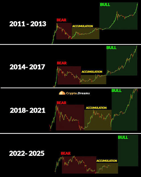 👉 BTC saat ini sedang mengkonsolidasikan. Ini adalah "fase akumulasi" atau awal dari reli baru.