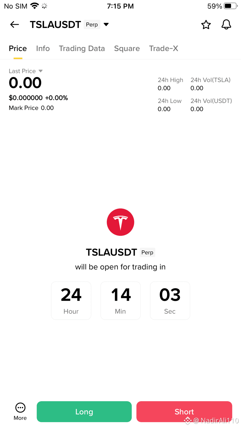 Example: TSLA = $250. You open a long 1 TSLAUSDT contract.