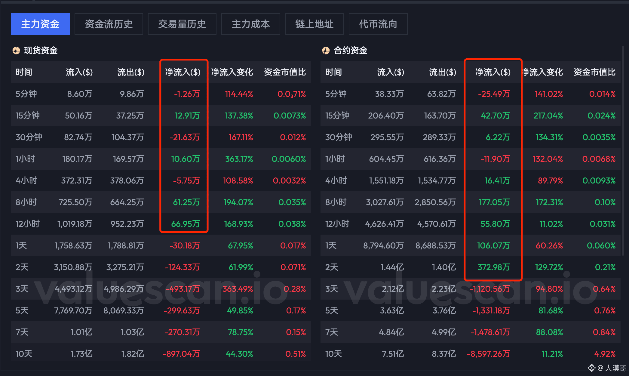 更值得注意的是资金流向,在市场热议的同时,主力资金在8小时、12小时级别依然保持净流入。