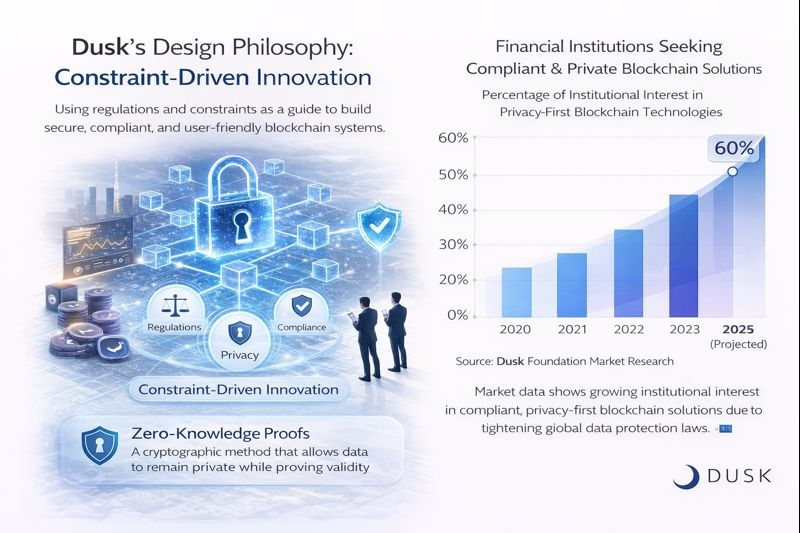 Semakin banyak, pasar melihat minat institusi yang lebih besar dalam kepatuhan, auditabilitas, dan kerahasiaan menggunakan sistem blockchain secara bersamaan. Lembaga keuangan telah berhenti menggunakan buku besar publik, yang mengekspos setiap aspek dari transaksi mereka. Mereka mencari infrastruktur baru yang berdasarkan sistem yang dapat diprediksi, terkontrol, dan kuat. Filosofi yang didorong oleh batasan Dusk sejalan dengan tren ini dan menunjukkan kelayakan jangka panjang dari pendekatan ini, daripada hanya menjadi tren jangka pendek. Sementara adopsi jenis sistem ini awalnya lambat dan disengaja, setelah kepercayaan pada sebuah sistem telah terbangun, pertumbuhan berkelanjutan menjadi stabil dan berkelanjutan.