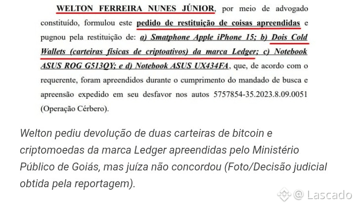 Welton, que já tinha caído na “Operação Cérbero”, queria de volta um iPhone 15, dois notebook da ASUS e, principalmente, duas Cold Wallets da Ledger, que são aquelas carteiras físicas de guardar criptoativo.
