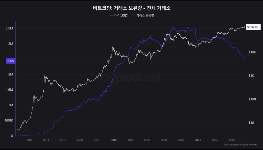 Selama beberapa bulan terakhir, saldo bursa terus menurun. Ini biasanya berarti satu hal: orang-orang tidak bersiap untuk menjual. Koin ditarik ke dompet dingin, kustodian, atau penyimpanan jangka panjang.