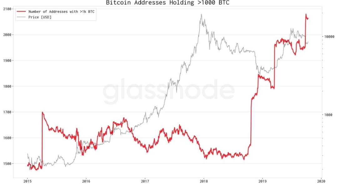 Data on-chain juga menunjukkan sesuatu yang menarik tentang paus — dompet besar yang memegang ribuan BTC.