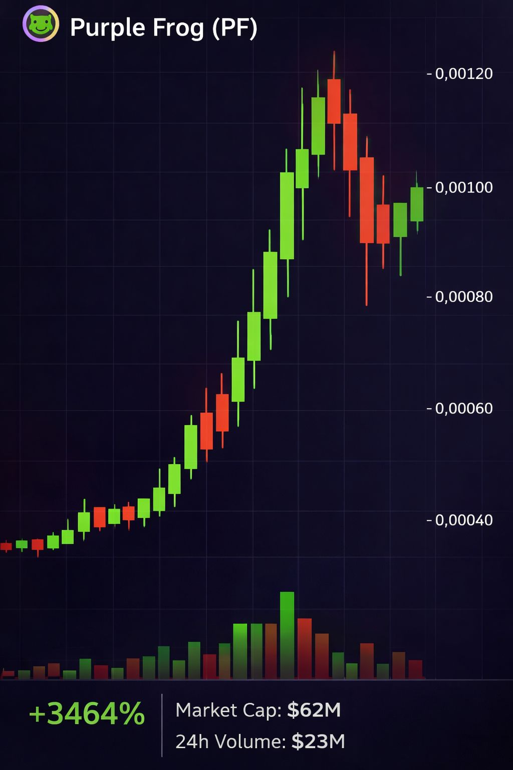 Volume: ~$47 J dalam 24 jam — sangat tinggi relatif terhadap kapitalisasi pasar, khas token meme selama lonjakan hype.#purpleC #purplecion
