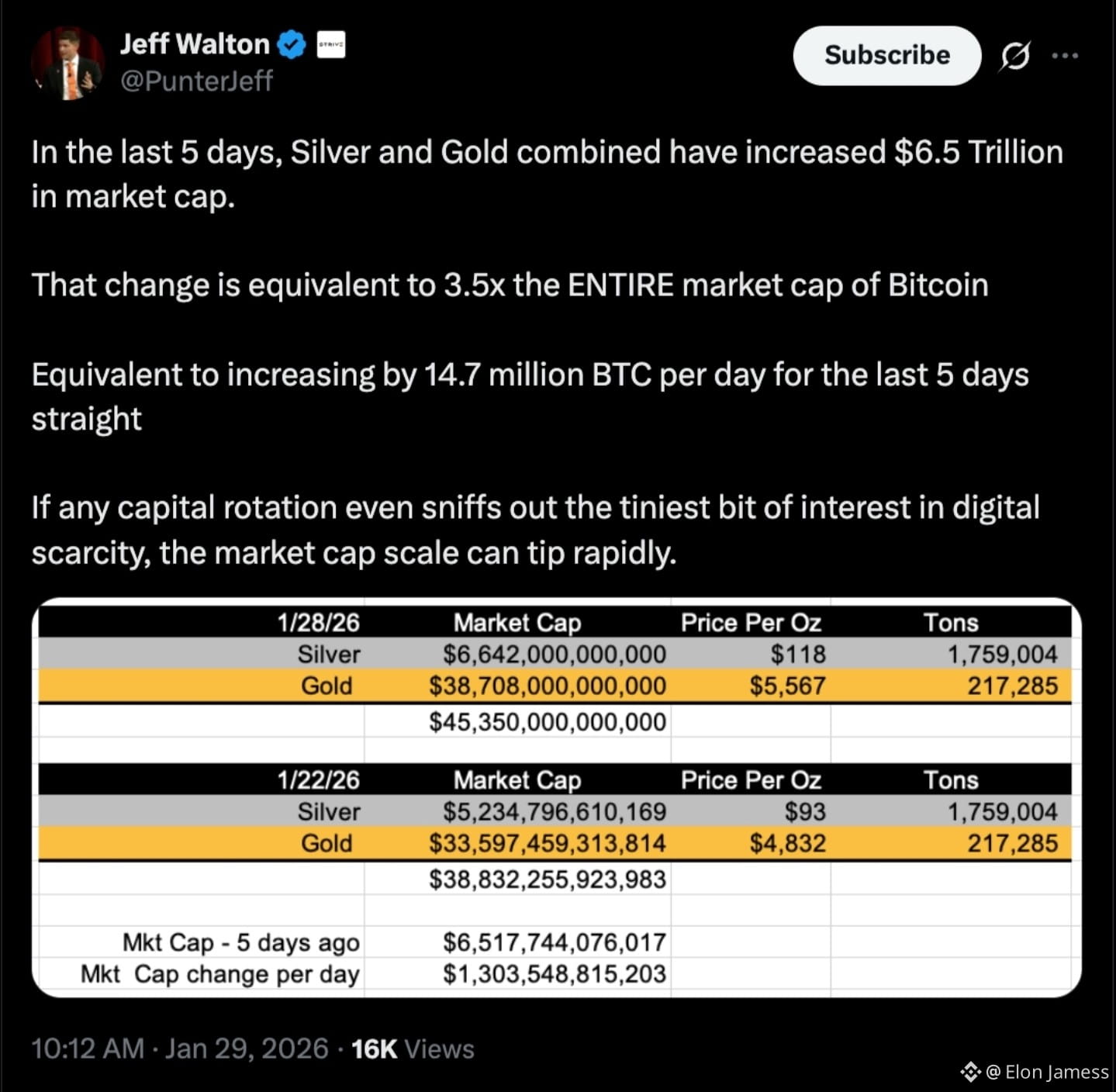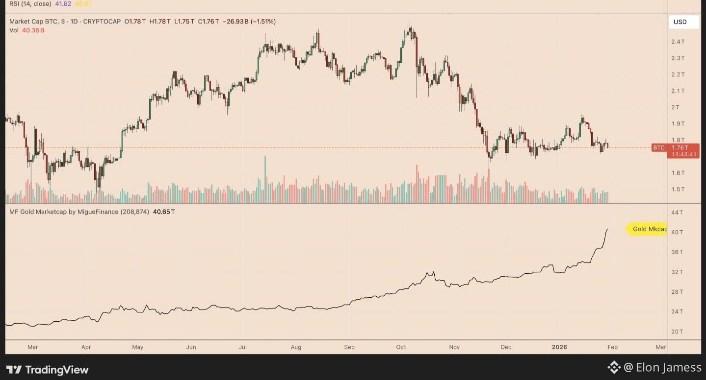 Bitcoin’s small size versus gold amplifies any potential upside even from minor reallocations.