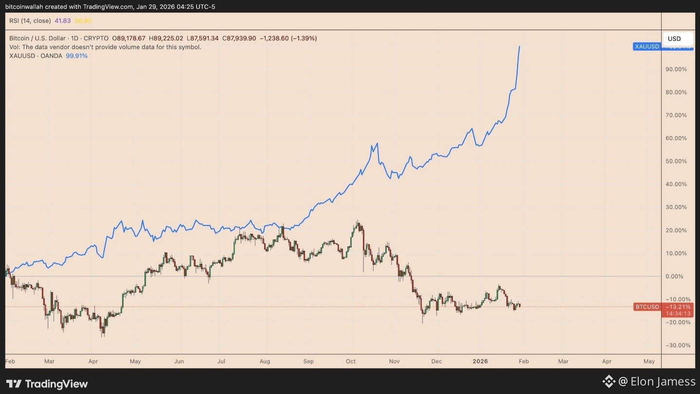 Bitcoin $BTC $87,963 has vastly underperformed gold (XAU) in the past year, dropping by 13.25% compared with the precious metal’s almost 100% rally. Can BTC catch up to gold’s gains?