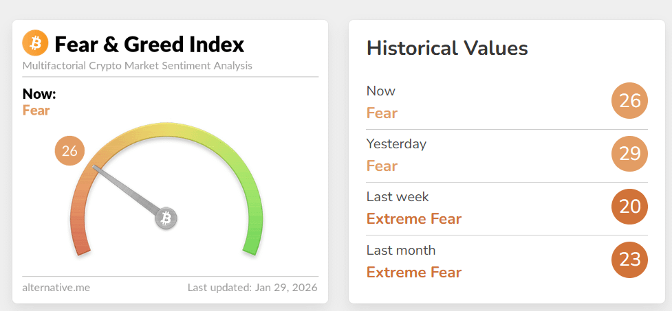 😨 Indeks ketakutan dan keserakahan jatuh ke 26 poin.