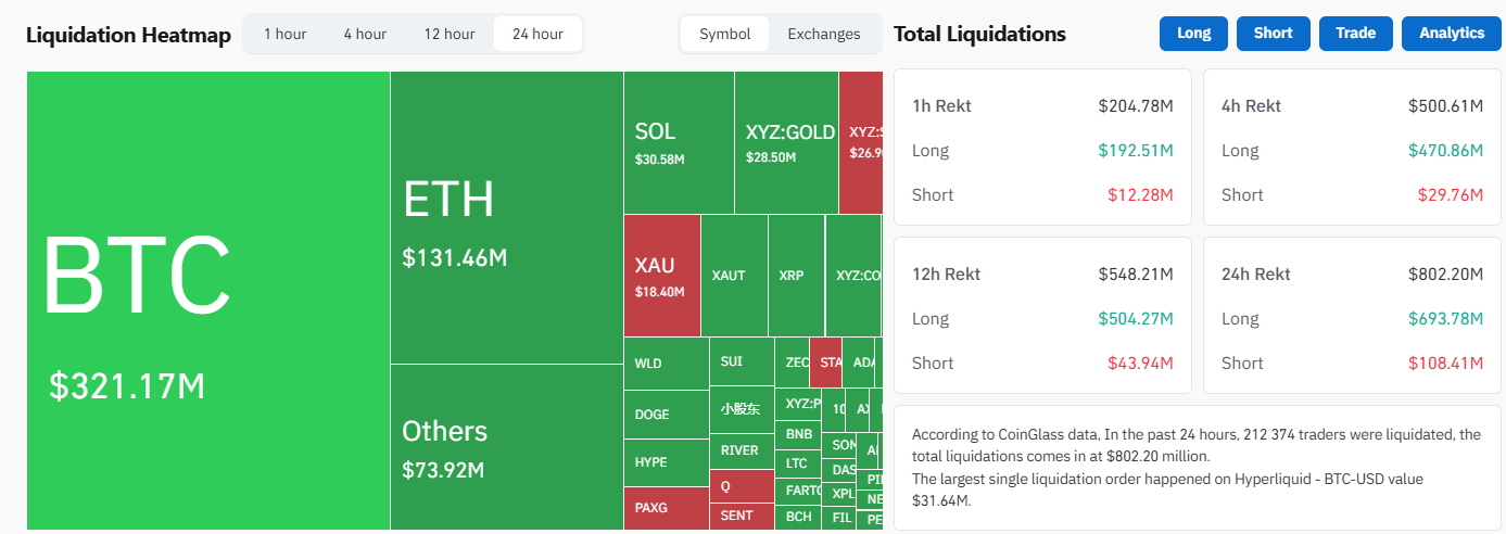 ● Lebih dari $800 juta likuidasi untuk futures