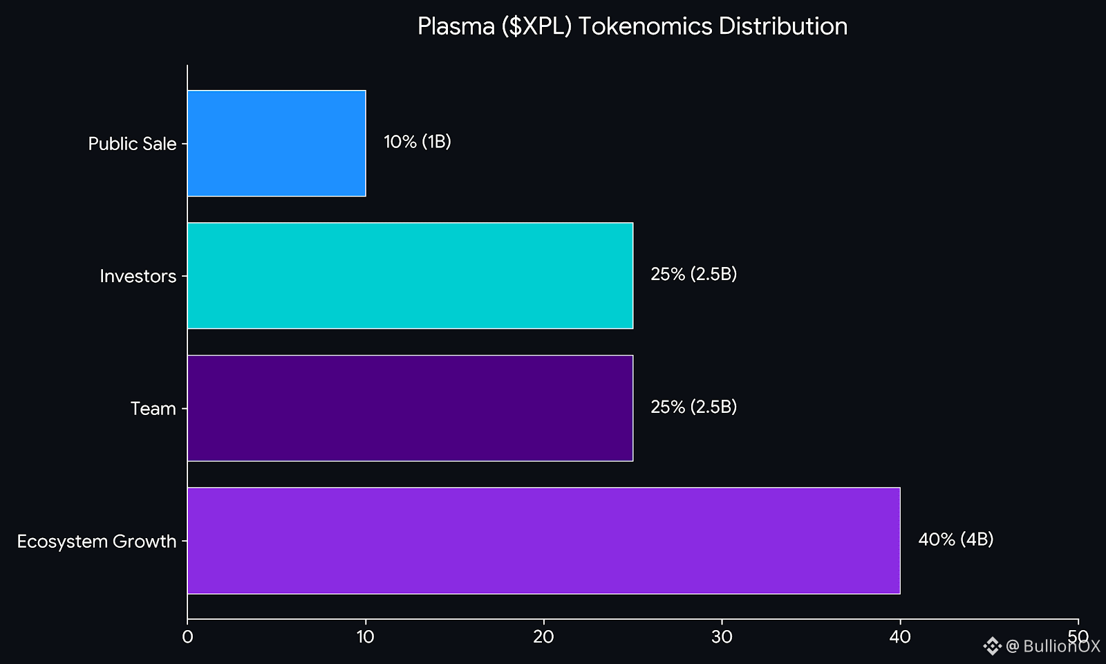 The token distribution is divided as follows: 40 percent (4 billion XPL) of the token goes into ecosystem growth, funding partnership, liquidity, and grants. When it was launched, 800 million of these were unlocked, with the remaining vesting monthly in the next three years.