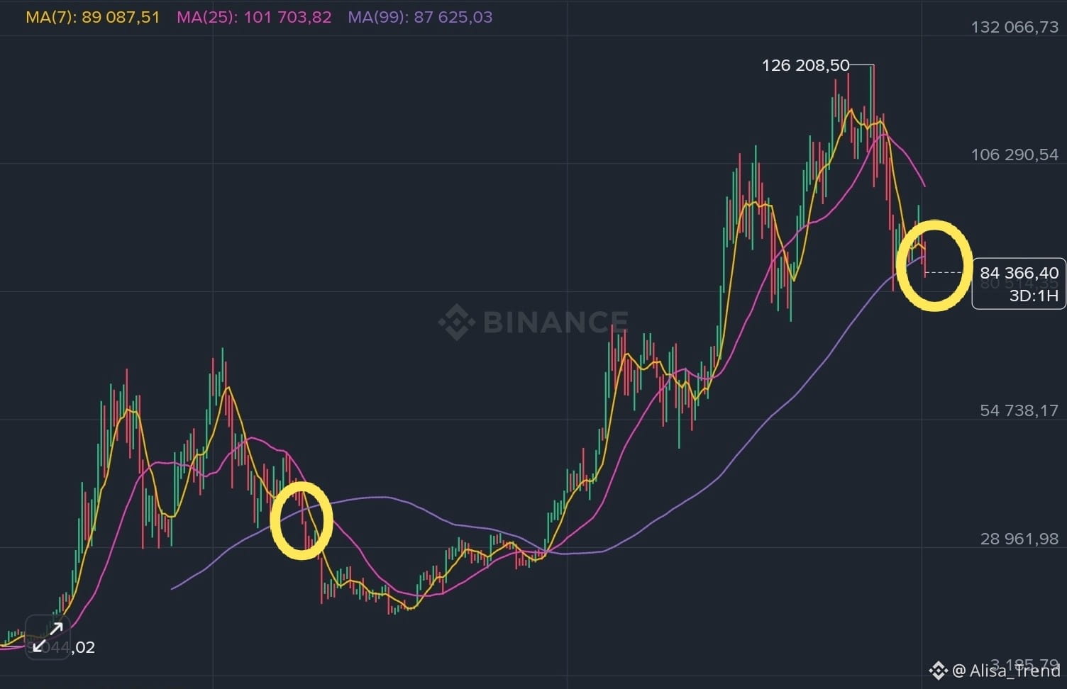 Самый позитивный исход, это коррекция до 70 000 и к 2028 году цена снова вернётся к 126 000, а дальше нас ждут новые вершины.