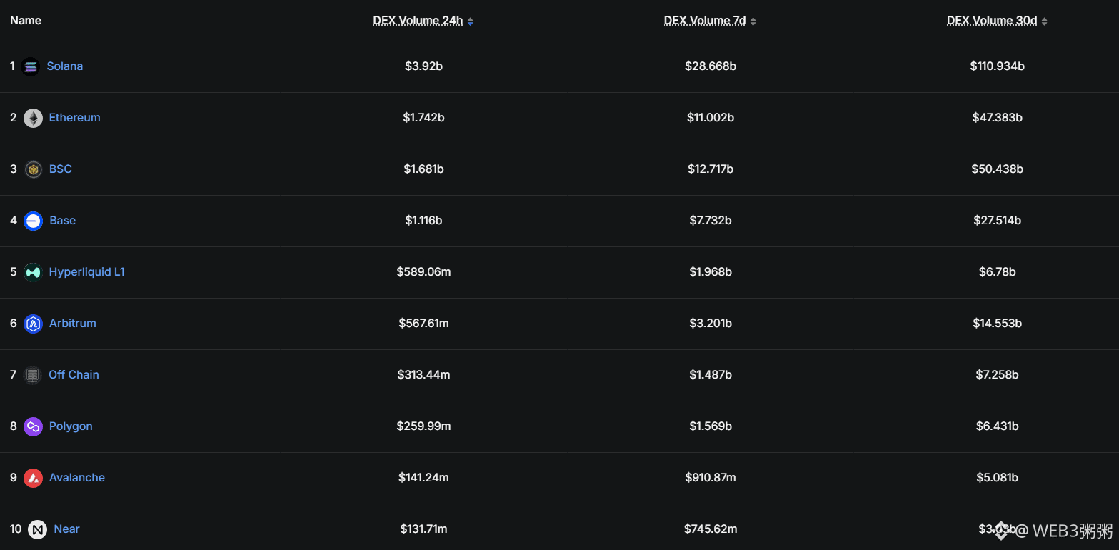 过去 30 天,Solana DEX 交易量超过 1,100 亿美元,是ETH的两倍多💸。