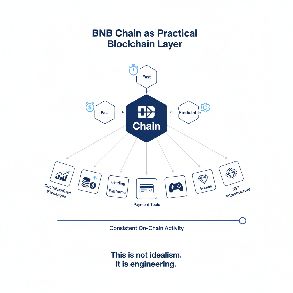 BNB Chain sering dibicarakan dalam istilah teknis, tetapi nilai sebenarnya adalah praktis. Ia dibangun untuk menjadi cepat, terjangkau, dan dapat diprediksi — kualitas yang sebenarnya dibutuhkan oleh pengembang dan pengguna.
