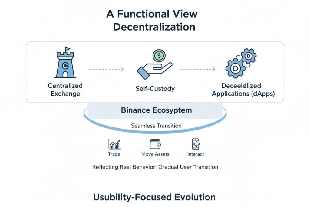 Salah satu aspek yang lebih matang dari ekosistem Binance adalah bagaimana ia memperlakukan desentralisasi. Alih-alih menganggapnya sebagai pilihan biner, Binance mengintegrasikannya sebagai sebuah lapisan.