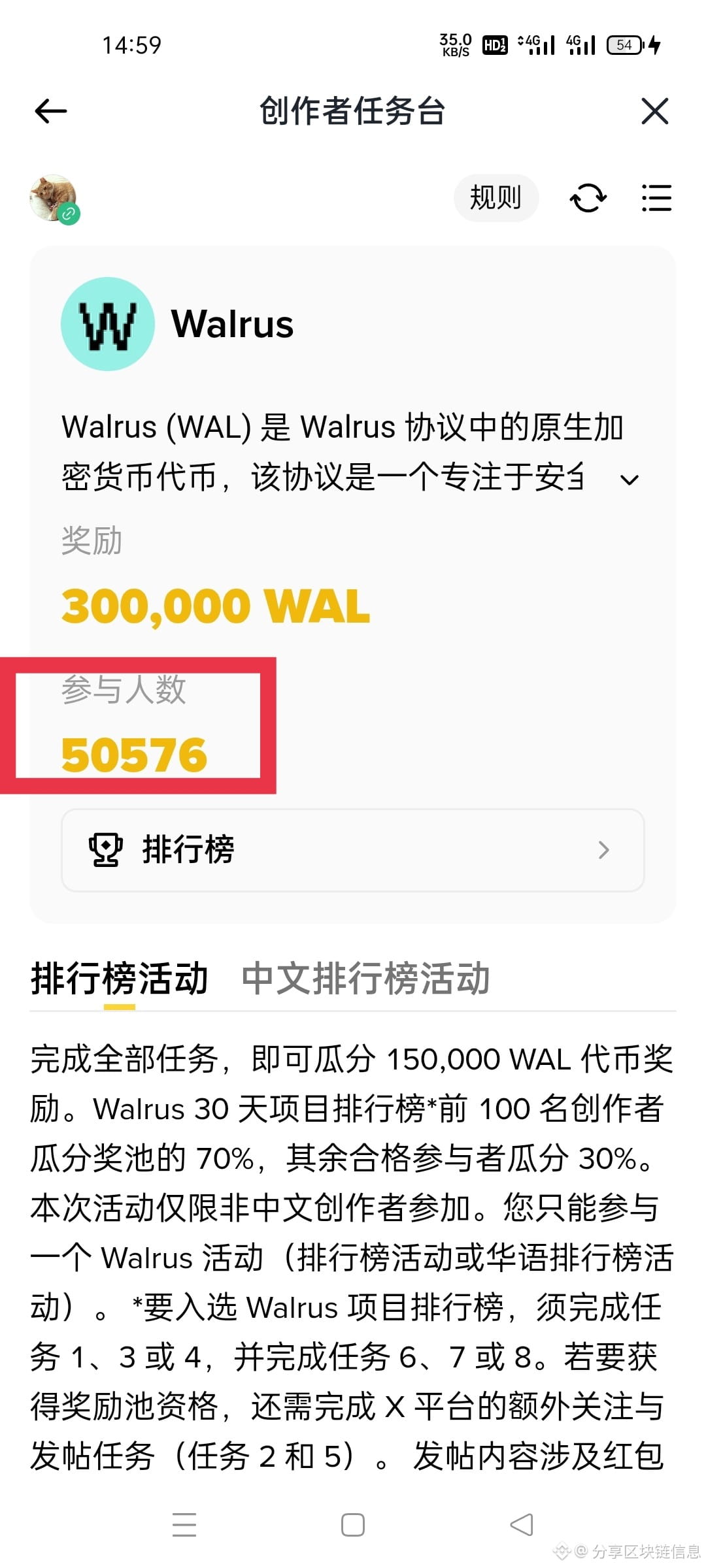 下午好朋友们,在分享之前本人先发一下牢骚。首先今天要吐槽一下WALKL项目方,项目实力没问题,技术没问题,就是项目方太抠搜,50000多人在参与项目热度拉满,奖励名单太少。至少要调整一下前500名,让更多人参与进来。,名单前100才有奖励,而且就40刀出头,说实话,还不够我刷一个礼拜的GAS费用,所以在这点上真的要吐槽一下WAL项目方,希望重视用户能够做出调整。长话短说,直接上干货!