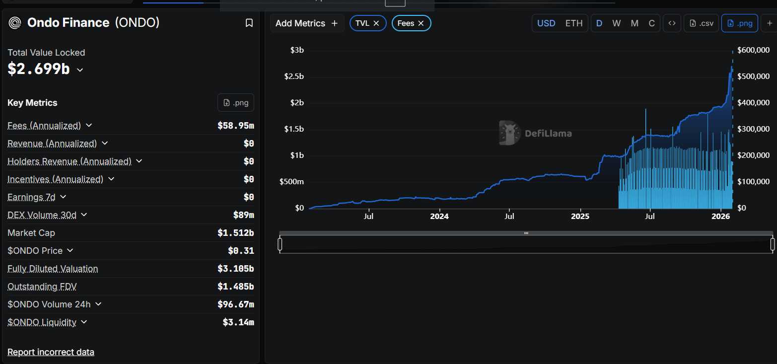 The Data: In January 2026, Ondo surpassed $2.5 Billion in Total Value Locked (TVL).