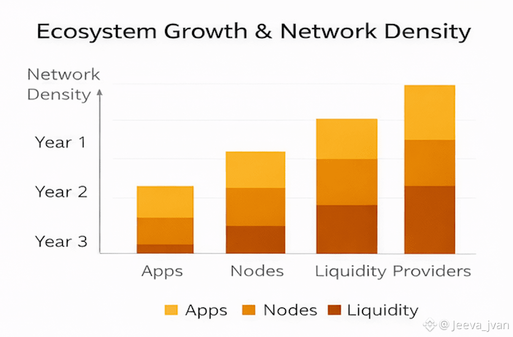 An ecosystem growth trajectory for Plasma would likely be slow and compounding rather than explosive. Developer onboarding programs, node operator tooling, community hubs, and payment SDKs are the kinds of foundations that quietly accumulate network density before user numbers surge. Infrastructure does not grow through viral loops. It grows like compound interest, layering participant upon participant until the system becomes too useful to ignore.