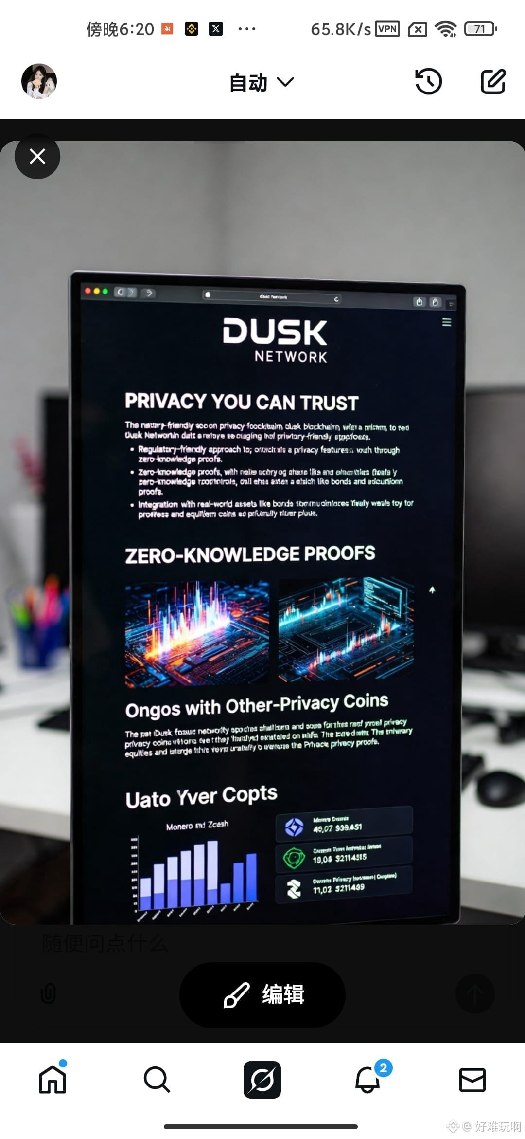 当然挑战还在:生态应用增长偏缓(目前以发行/结算为主)、节点门槛导致验证权有一定集中、FDV相对流通市值仍高,短期波动难免。但看到NPEX dApp生产推进、Chainlink标准深度集成、Dusk Pay MiCA支付网络测试,我就觉得这个六年项目终于从“研发”转向“交付”。它不卷meme、不泛DeFi,而是安静建一条“受监管金融的隐私轨道”。作为一个长期观察者,我把DUSK归在“基础设施长期价值”那一档。RWA赛道万亿共识已成,如果隐私合规成为机构标配,Dusk很可能成为最关键却最安静的那条链。2026年交付节奏加速,值得继续盯着。#Dusk $DUSK