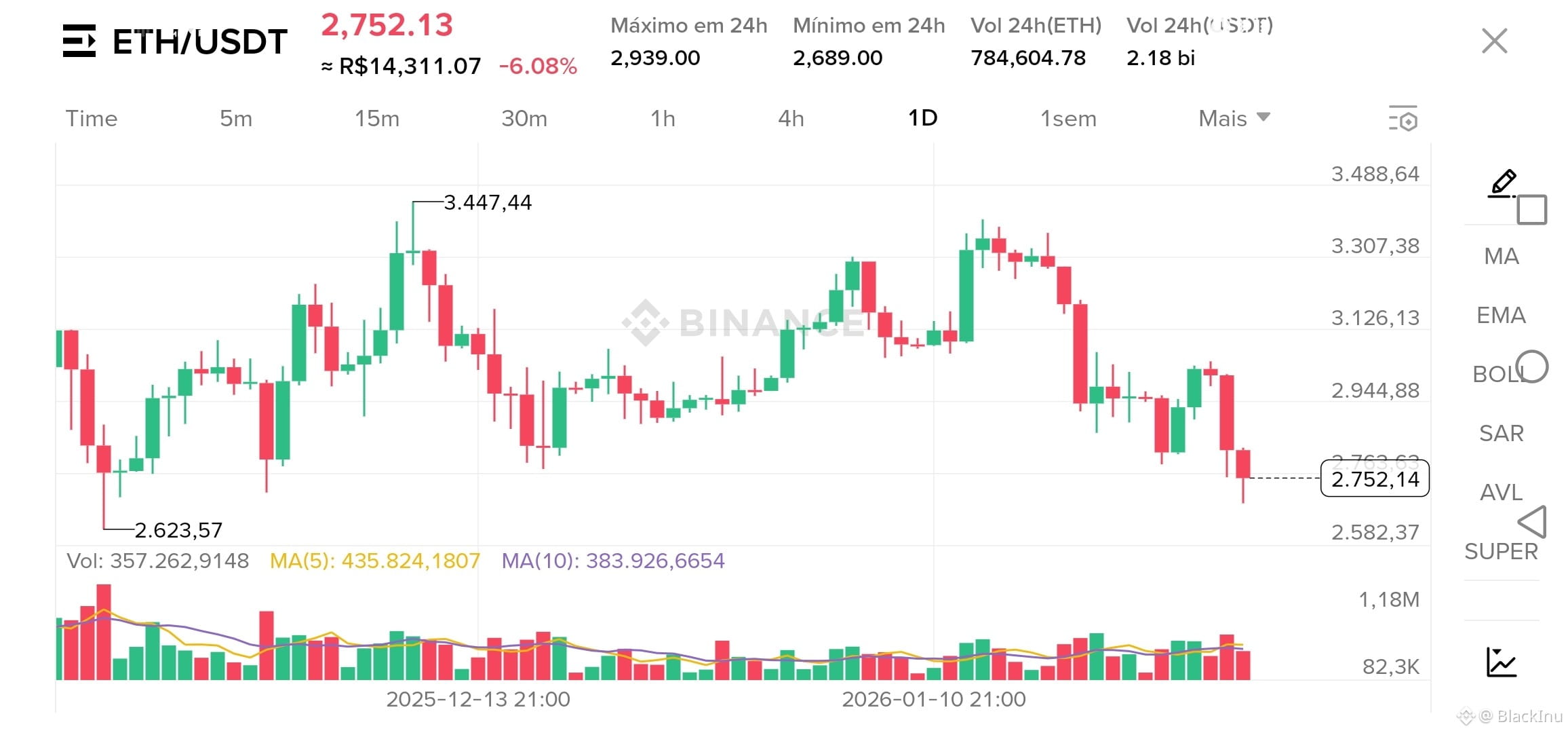 Preço Atual: $2,752.13 (≈ R$ 14,311.07)