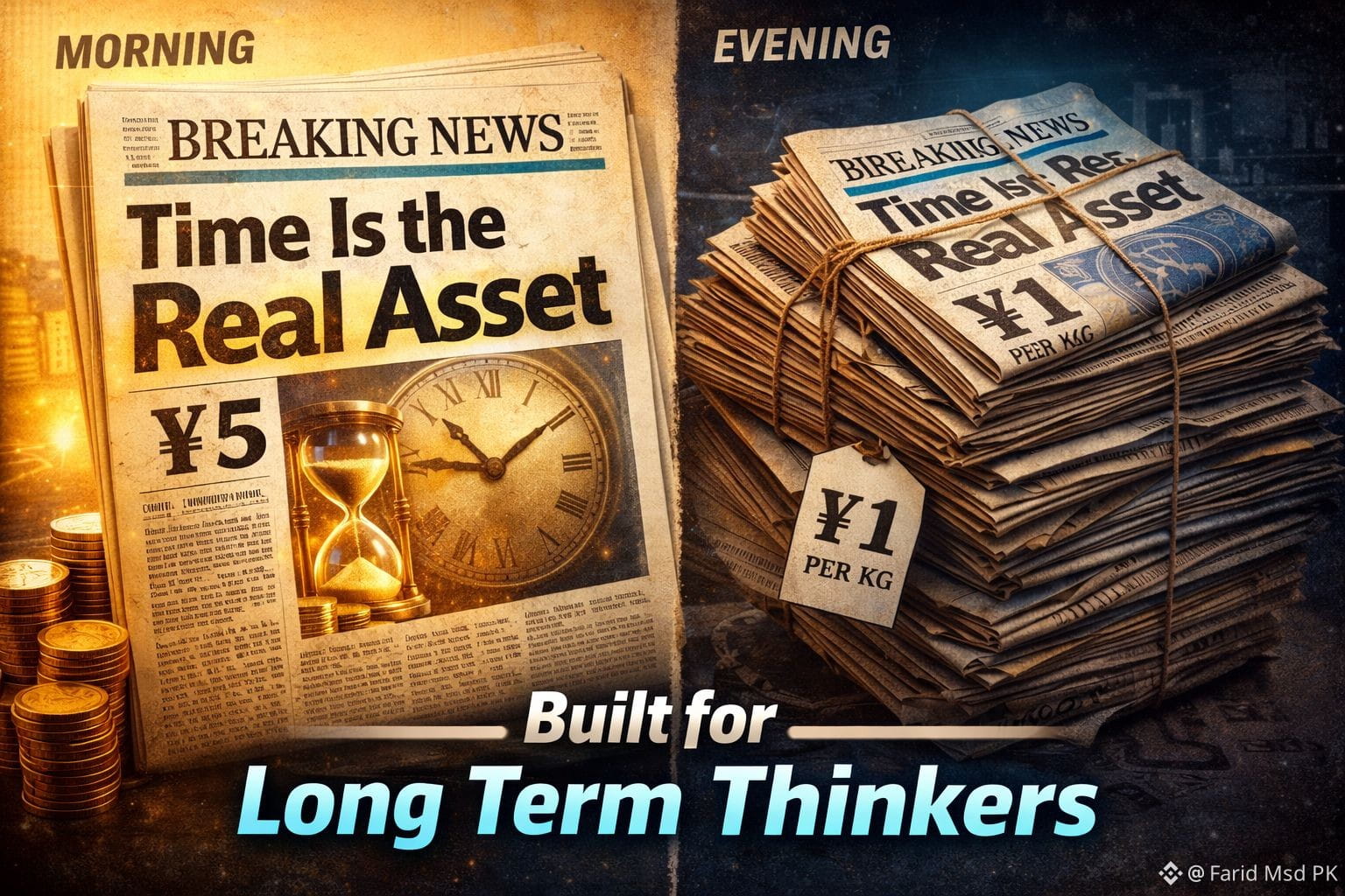 Someone once asked what the most valuable thing in the world is. My answer was simple: no object is truly valuable. Time is the real value. A clear example explains this better than any theory. The same newspaper that costs five dollars in the morning is sold by weight in the evening for one dollar per kilo. The paper does not change. The information does not change. Only time changes. That difference in time is what destroys or creates value. This is why time matters more than anything else.