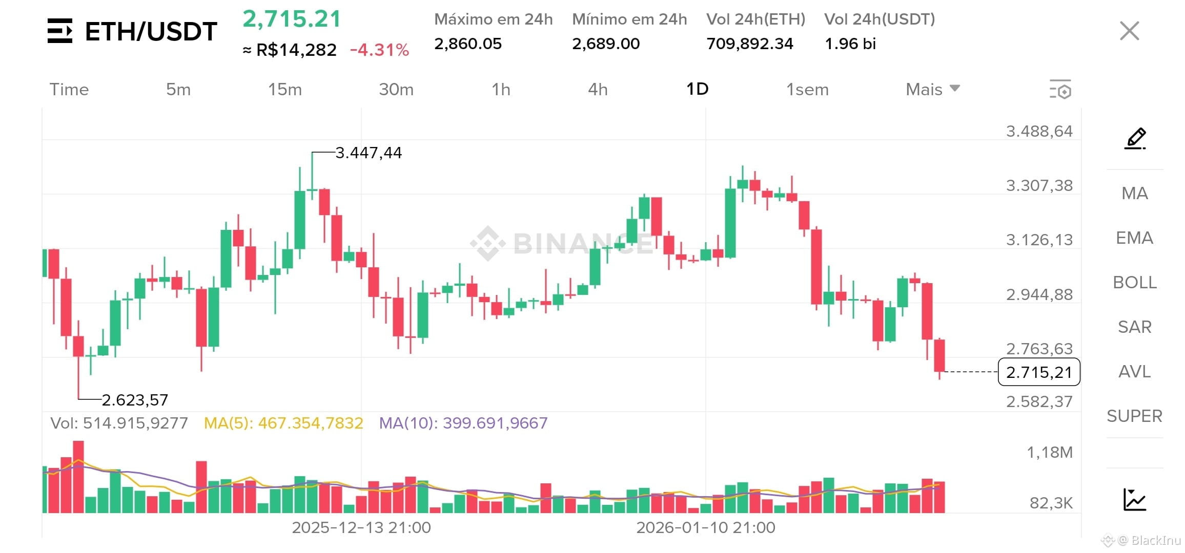 Perdeu 3.300, testa 2.700 (suporte-chave).Volume sobe = pressão vendedora ativa.Segurando 2.700 pode reagir; perdendo, mira 2.580.