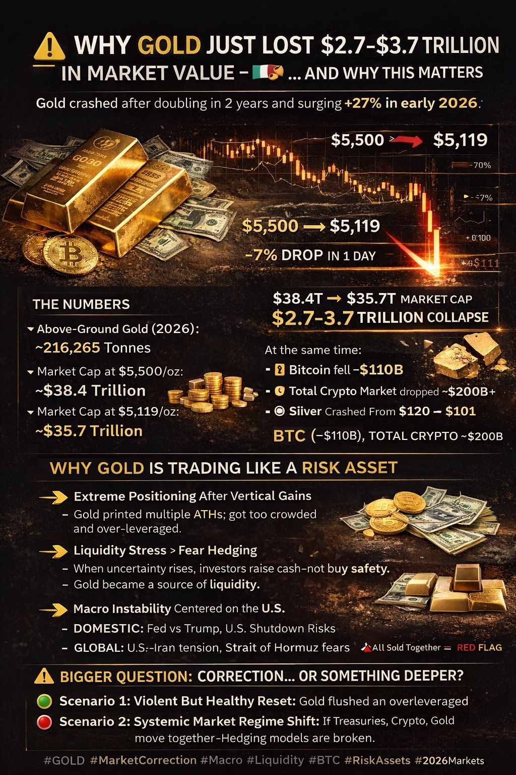 ๐ก Mengapa Emas Baru Saja Kehilangan $2.7โ$3.7 Triliun dalam Nilai Pasar โ Dan Mengapa Ini Penting