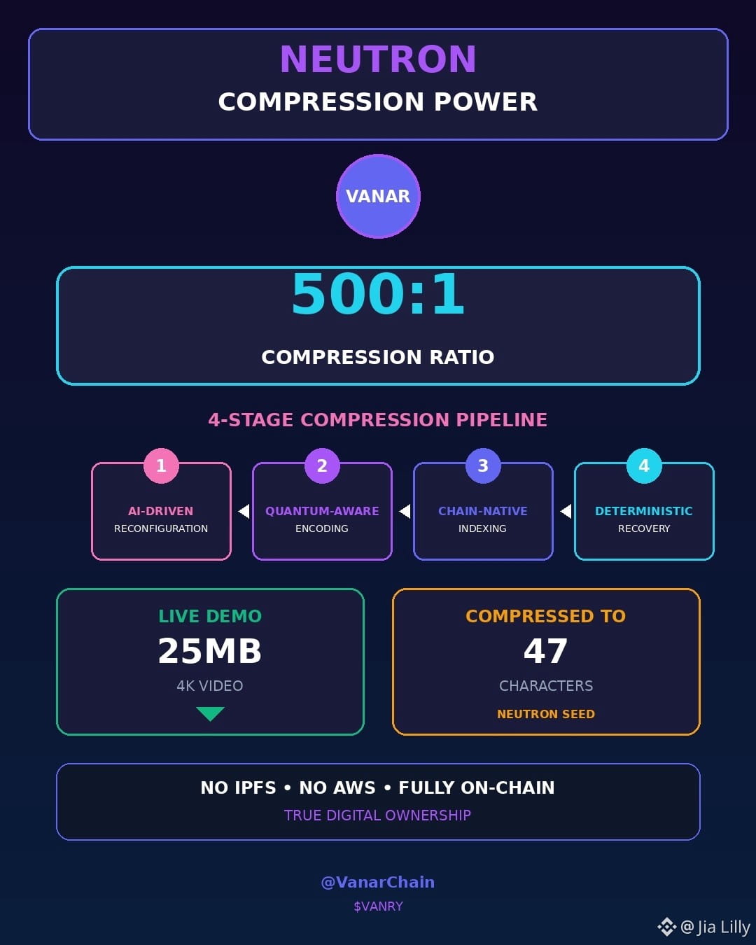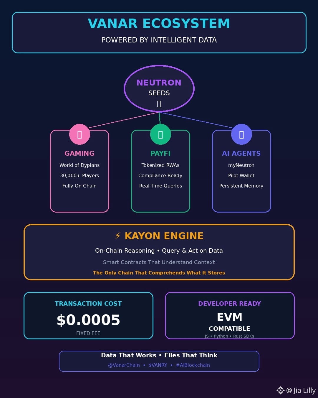 What makes Vanar different is not a small change to how they agree on things or making transactions a little bit faster. It is actually something important: they have made a blockchain that can really store and understand data all by itself. The main part of this is Neutron, a way to make files smaller that can shrink them by, up to 500 times into things they call "Seeds" that're completely on the Vanar blockchain.