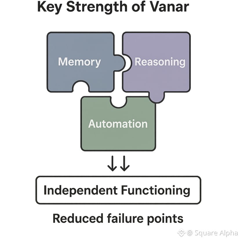 A key strength of Vanar is that it treats intelligence as an operational load, not a marketing feature. Memory, reasoning, and automation are integrated in a way that allows systems to function independently without relying on fragile off-chain coordination. This reduces failure points and increases predictability — two properties that matter far more to institutional adopters than raw performance metrics.