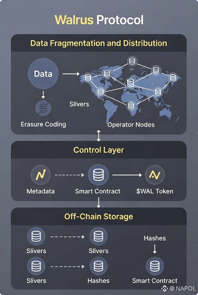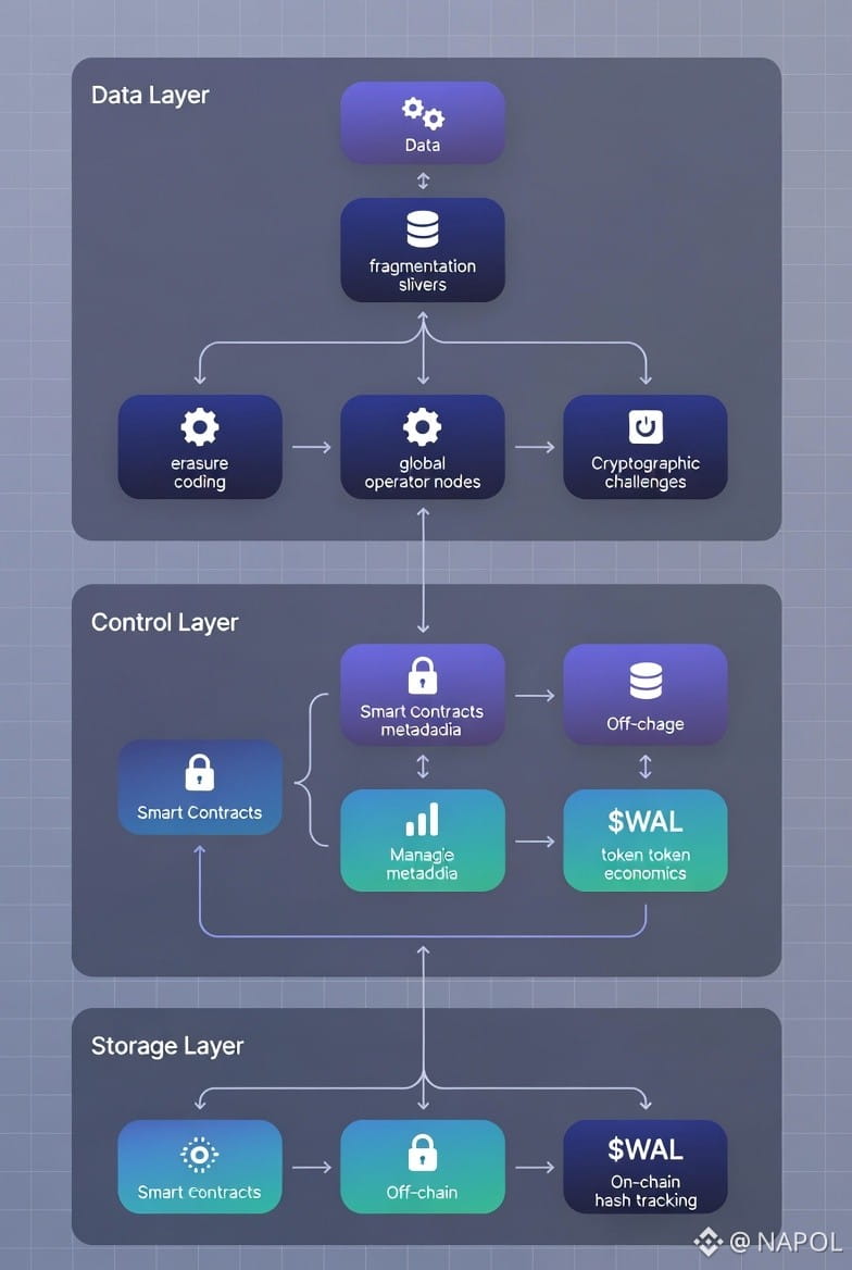 A estrutura interna desse protocolo trabalha em camadas distintas, cada uma com responsabilidades bem definidas. Quando alguém submete um arquivo para armazenamento no Walrus, ele não fica simplesmente jogado em algum servidor centralizado existe todo um processo de fragmentação e distribuição que garante tanto a segurança quanto a recuperabilidade das informações.