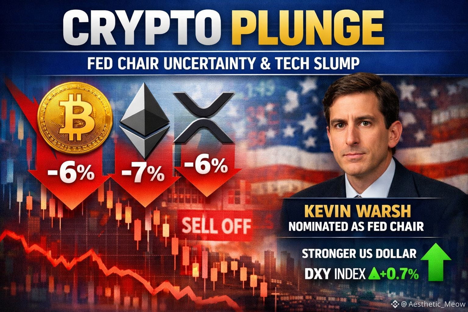Support levels near recent lows—especially for Bitcoin around the $80,000–$81,000 area— may be tested further if Warsh or other policymakers express more restrictive views. Conversely, any clarification favoring continued easing, positive regulatory news, or a stabilization in tech stocks could help a recovery.