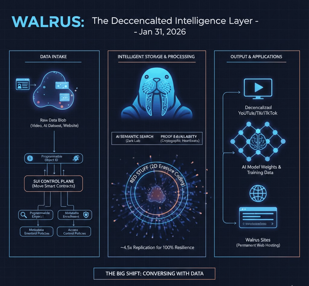 Walrus mewakili pergeseran mendasar dalam cara kita memahami, mengelola, dan memanfaatkan data. Ini memposisikan informasi bukan sebagai sumber statis yang terkurung dalam repositori terisolasi tetapi sebagai aset yang dapat dikelola, yang mampu diakses, diverifikasi, dan digunakan dengan aman di seluruh ekosistem digital yang kompleks. Dengan membayangkan kembali tata kelola data dari dasar, Walrus mengubah informasi dari produk sampingan yang pasif menjadi mesin aktif untuk inovasi, memungkinkan pengembang, organisasi, dan sistem AI untuk berinteraksi dengan informasi secara bertanggung jawab, efisien, dan kreatif.