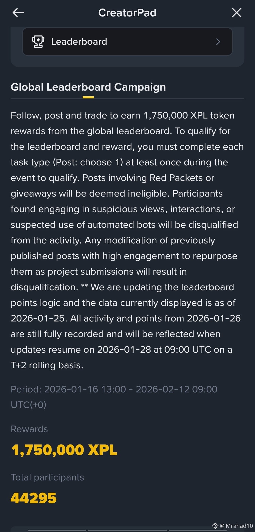 Binance CreatorPad ka XPL Global Leaderboard Campaign un creators aur traders ke liye ek premium opportunity hai jo Binance ecosystem ke andar long-term aur sustainable earning ka vision rakhte hain. Is campaign ke through Binance ne total 1,750,000 XPL tokens ka ek strong reward pool allocate kiya hai jo eligible participants ke darmiyan distribute kiya jayega.