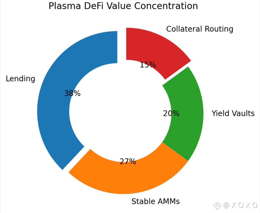 What stands out is how quiet this all feels. There are no sharp spikes, no dramatic incentives, no constant resets. Plasma does not attempt to redefine DeFi. It simply aligns itself with how financial systems behave when they mature. Lending anchors capital. Stable AMMs move it efficiently. Yield vaults manage it patiently. Collateral routing ensures nothing sits idle for too long.
