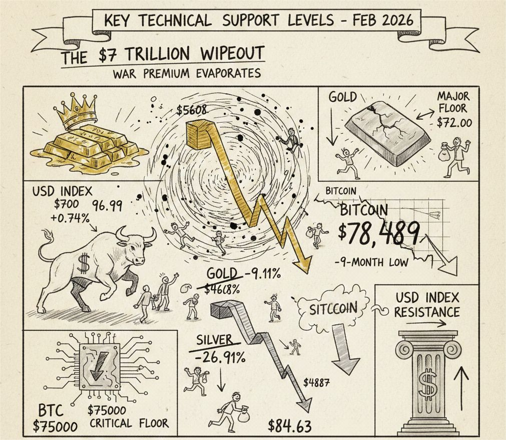 "War Premium" yang mendorong komoditas ke ketinggian setinggi stratosfer pada Januari 2026 telah menguap secara tiba-tiba. Mengikuti berita tentang potensi de-eskalasi ketegangan di Timur Tengah bersamaan dengan sikap hawkish dari Fed, investor memicu acara "jual semuanya" untuk mengunci keuntungan generasional.
