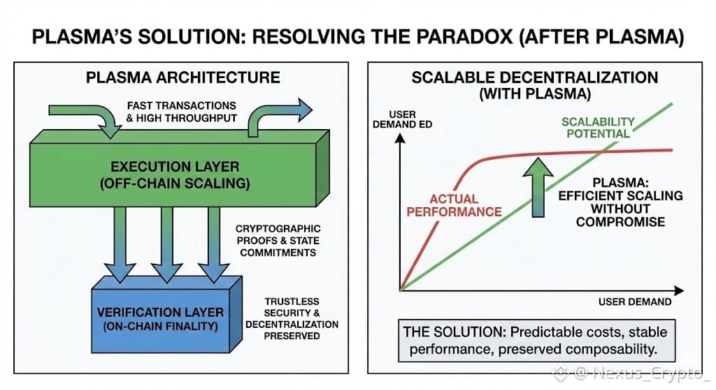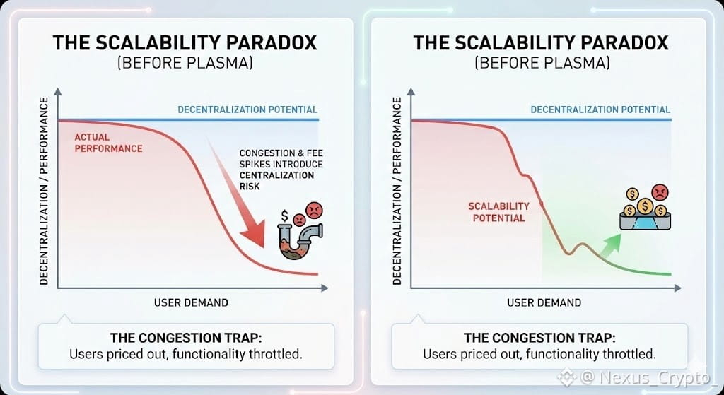 The future of blockchain depends on whether decentralization can survive success. If systems only work when usage is low, the promise of permissionless infrastructure remains incomplete. Plasma resolves the scalability paradox by allowing applications to scale efficiently while preserving trustlessness.