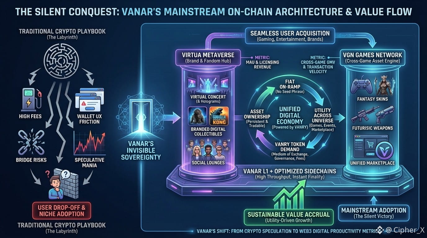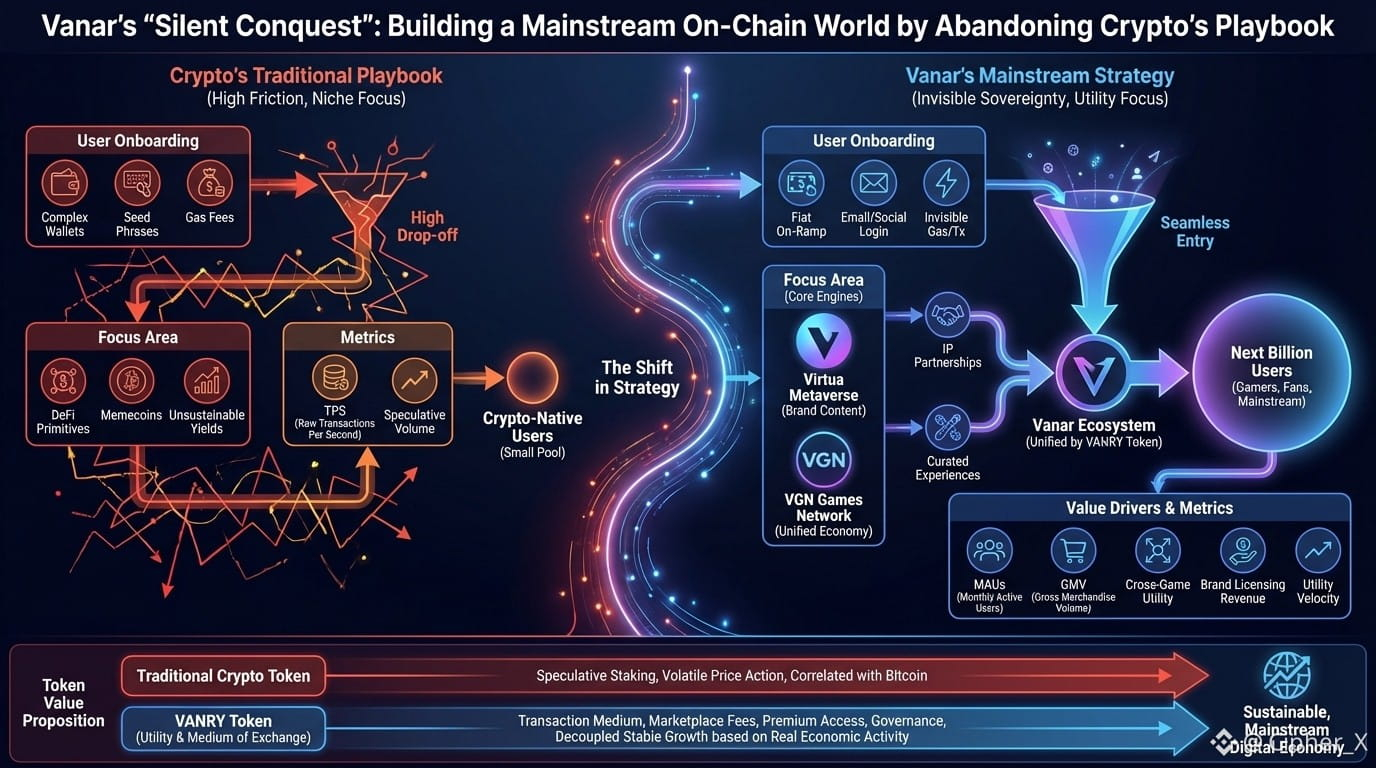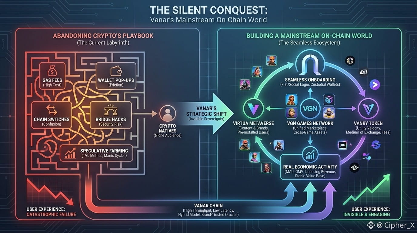 The most significant events in this industry are rarely the loudest. While attention frantically chases the latest memecoin mania or the hot new DeFi primitive promising unsustainable yields, a more profound, more permanent shift is being architected in the background. It’s a shift that doesn't scream "decentralize everything" but quietly asks, "What would make sense for someone who has never heard of a seed phrase?" This is the territory of Vanar, and to dismiss it as just another Layer-1 blockchain is to fundamentally misunderstand the strategic siege it is laying on the entire concept of mainstream adoption. Vanar isn't trying to win over crypto-natives. It is methodically building a parallel digital economy for the next billion users who may never know, or care, that they are on-chain. This is not an incremental improvement; it is a philosophical rebellion against everything that has held Web3 back.