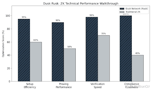 The first process is setup: ZK algorithms like PLONK (used in Dusk) start with a trusted setup phase to generate parameters for proofs. Rusk optimizes this for efficiency, creating circuits that describe contract rules in a ZK friendly way. This setup ensures proofs are succinct, allowing validators to check validity quickly without heavy computation.