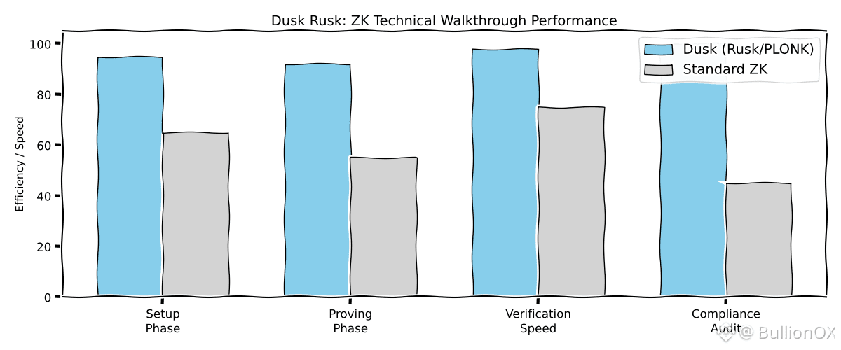 Verification is the final step: The verifier checks the proof against public parameters. Rusk makes this lightweight, with proofs sized in hundreds of bytes, enabling fast network consensus. For Dusk's institutional focus, this means regulators can verify compliance (e.g., limits met) without seeing data, balancing privacy with accountability.