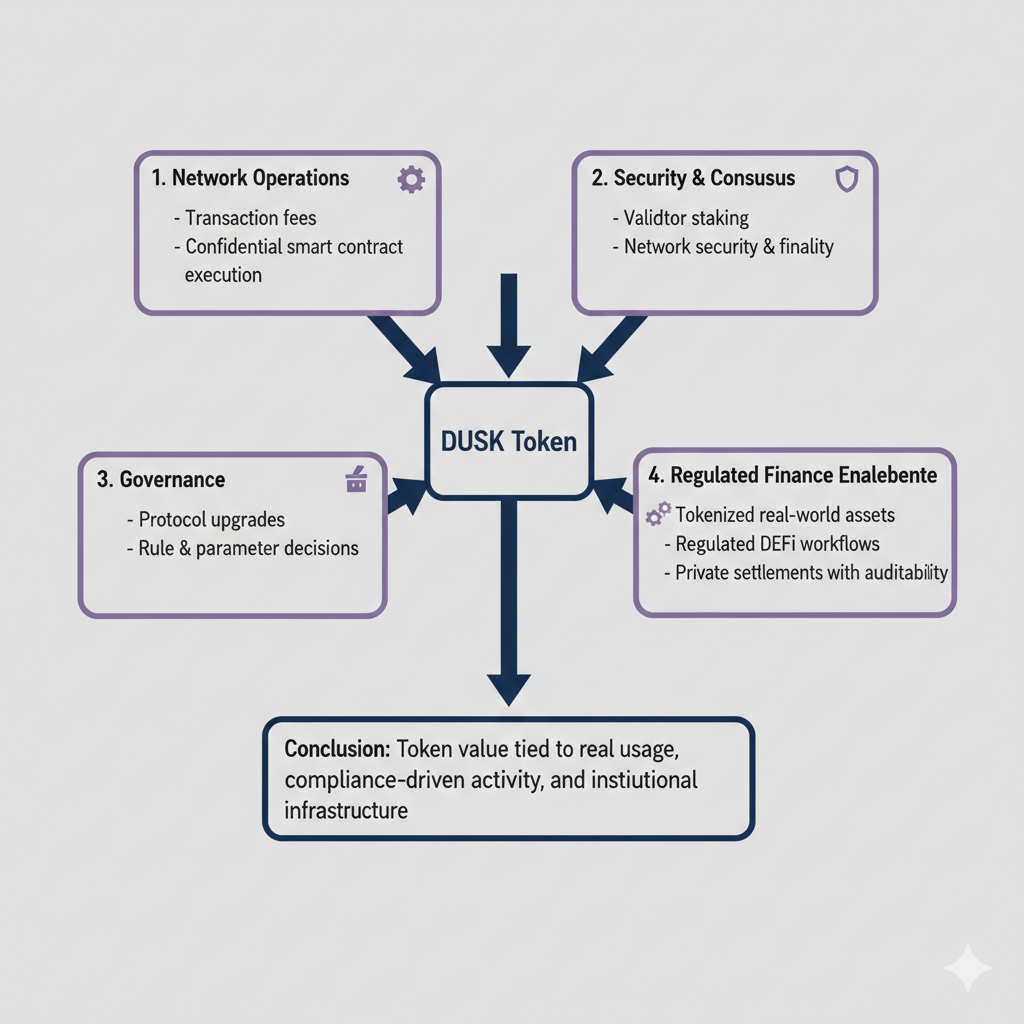 Peran token DUSK juga jelas di sini. Ini bukan hanya untuk perdagangan spekulatif. Operasi inti jaringan terikat pada token ini. DUSK digunakan untuk transaksi dan eksekusi kontrak. Validator mengamankan jaringan dengan mempertaruhkan token ini. Keputusan pemerintahan juga melibatkan partisipasi pemegang token. DUSK juga digunakan dalam eksekusi kontrak pintar rahasia.