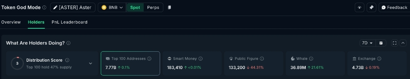 Bahkan dengan pengawasan yang diperbarui terhadap Binance setelah penurunan pasar akhir Januari, Aster telah diam-diam menarik pembeli signifikan. Dalam seminggu terakhir, kepemilikan paus meningkat sekitar 21,61%, sementara dompet yang terkait dengan tokoh publik mengurangi eksposur mereka. Ini menunjukkan bahwa sementara influencer yang terlihat menarik diri selama kritik, pemegang besar swasta mengakumulasi, menunjukkan meningkatnya kepercayaan di antara investor besar.
