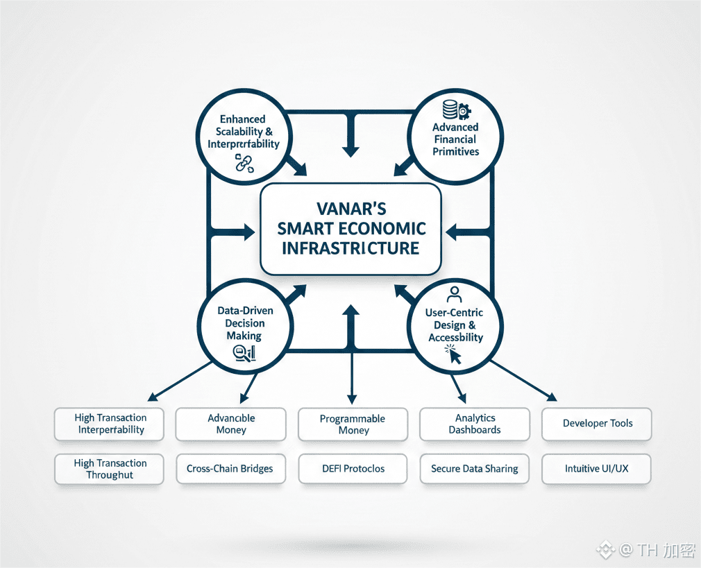 So what is Smart Economic Infrastructure about? It is a set of technologies and rules that work together to help create and manage economies. Smart Economic Infrastructure is not about making digital tokens or apps that work without a central authority. It is about building a base for whole ecosystems. Think of a system where businesses and people who make things and users can work together easily exchange value and build economic systems in a very efficient and secure way. This is what Vanar's new direction is, about Smart Economic Infrastructure.