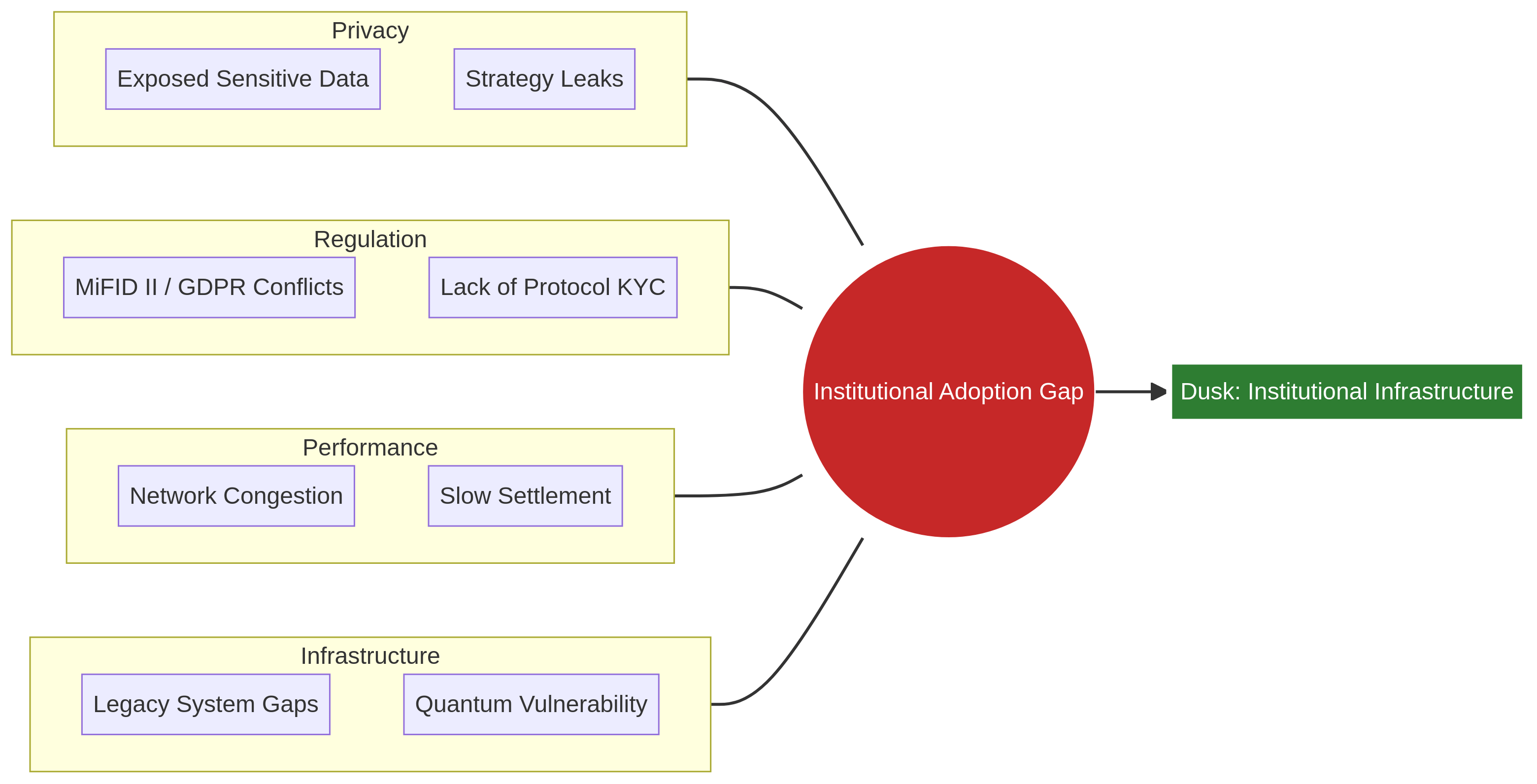 Ini adalah basis yang pribadi dan sesuai yang mungkin akhirnya memungkinkan Wall Street dan lainnya menggunakan blockchain hingga potensi penuhnya. Pertimbangkan ini: institusi menangani triliunan dalam aset setiap hari, dari perdagangan derivatif hingga aset token. Mereka memerlukan privasi untuk menjaga rencana mereka tetap aman, kemampuan untuk menangani jutaan transaksi dengan cepat, dan untuk bekerja dengan sistem lama.