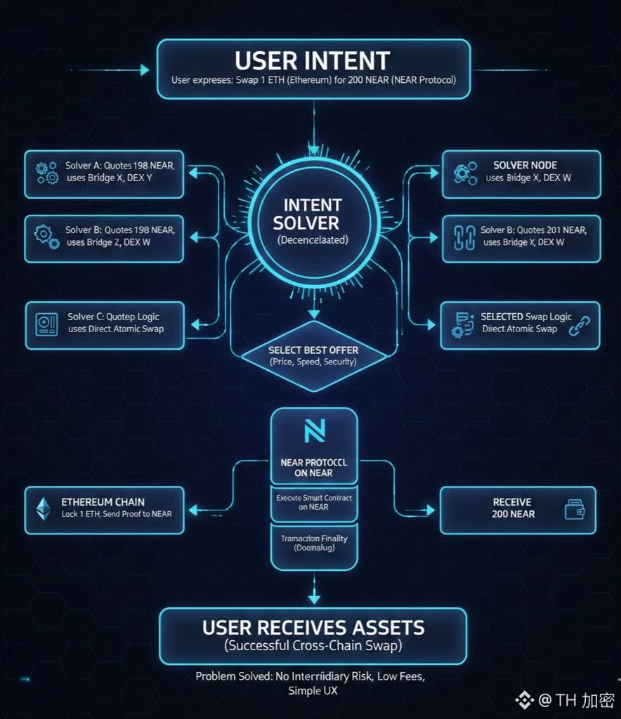 The NEAR system is a place for cross-chain liquidity to happen. As more people start using intent systems the NEAR system can be a place where people who solve problems can come together and manage money that is moving between different chains. This makes it easier to move assets from one chain to another without having to rely on middlemen that can be hacked. The NEAR system is important, for -chain liquidity.