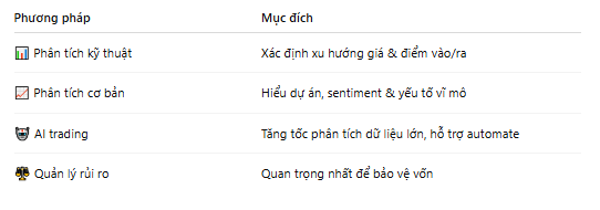 ➡ Menggabungkan analisis teknikal + fundamental dengan AI untuk mengevaluasi data besar dan mensimulasikan strategi — tetapi selalu menetapkan manajemen risiko yang jelas (stop-loss, take-profit, modal risiko setiap perdagangan rendah).