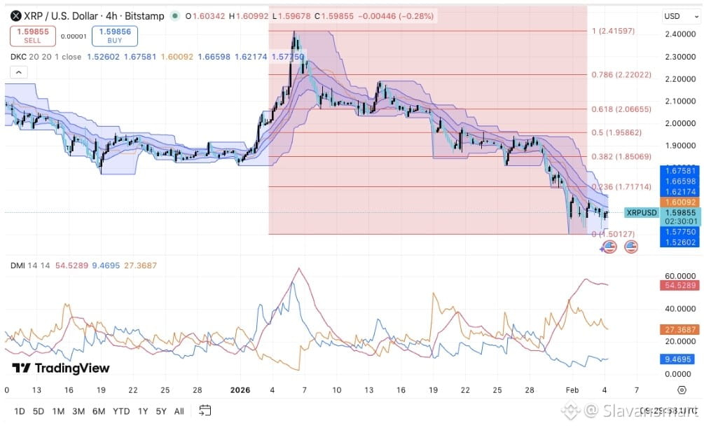 $XRP остаётся под давлением, пока трейдеры оценивают, сигнализирует ли недавнее ценовое движение сигналом стабильности или дальнейшего риска снижения. На 4-часовом графике XRP/USD продолжает торговаться в рамках определённого краткосрочного нисходящего тренда. Ценовое движение остаётся ограниченным ниже ключевых диапазонов волатильности и краткосрочных средних значений.